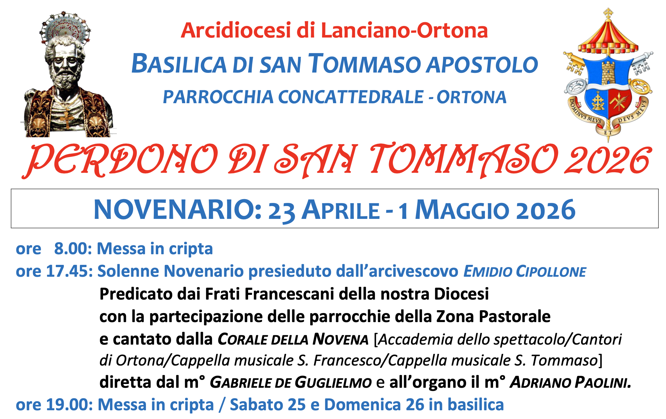 AVVISO ai PELLEGRINI CHE DESIDERANO VISITARE LA TOMBA DI S.TOMMASO APOSTOLO in ORTONA