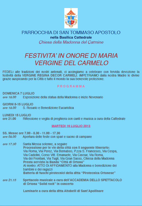 FESTIVITA' IN ONORE DI MARIA VERGINE DEL CARMELO