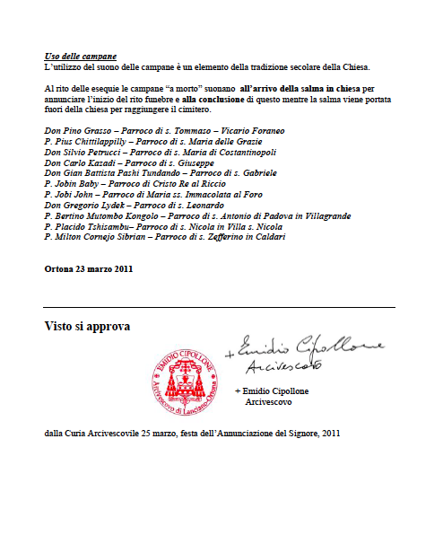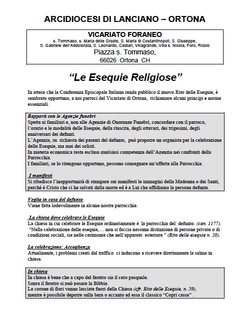 ARCIDIOCESI DI LANCIANO-ORTONAVicariato Foraneo di OrtonaLe Esequi Religiose esequie religiose (PDF)